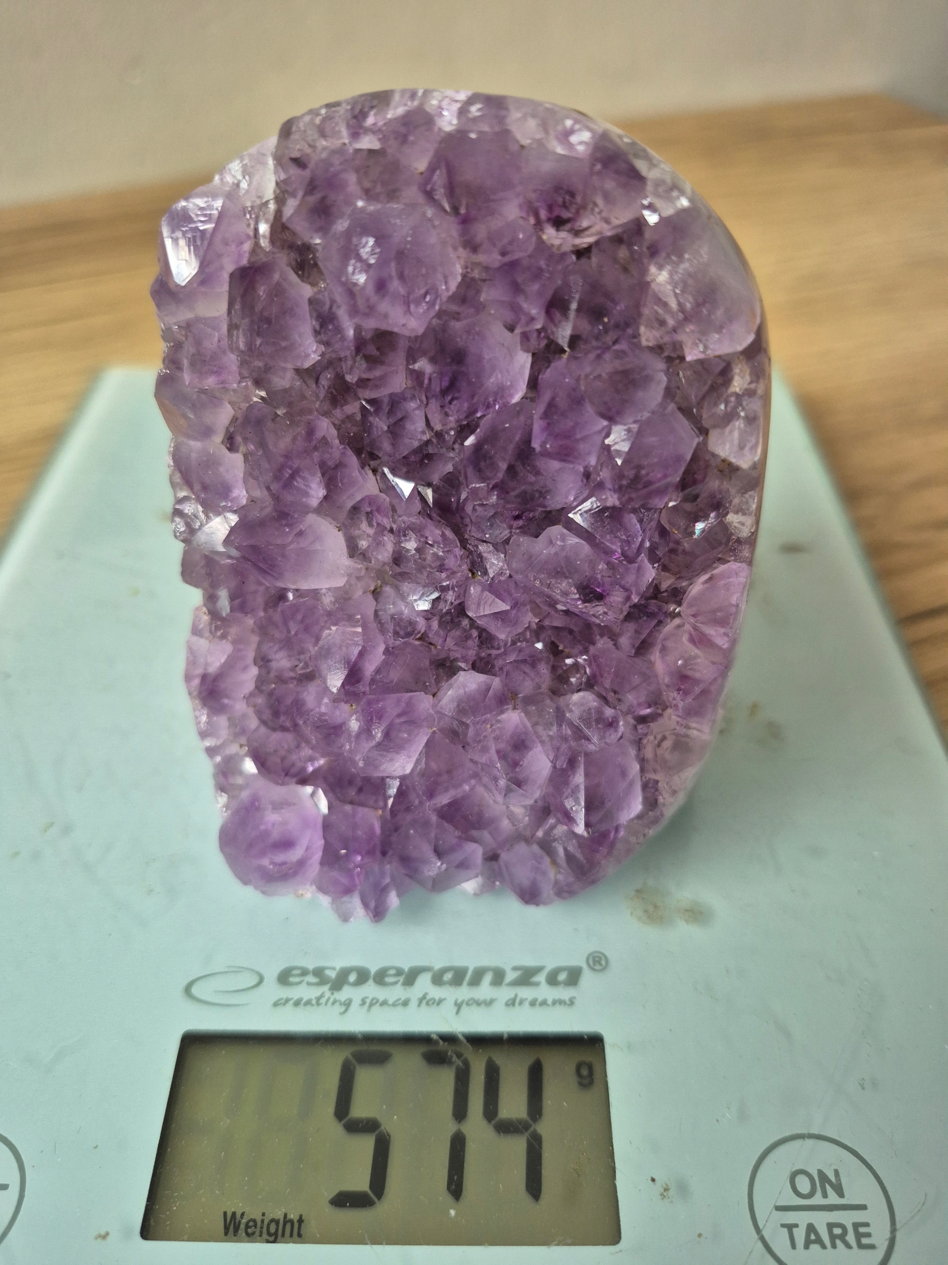 Ametyst szczotka 550 gram 10 cm geoda stojąca Brazylia Kamień Spokoju i Ochrony, okaz ze zdjęć.