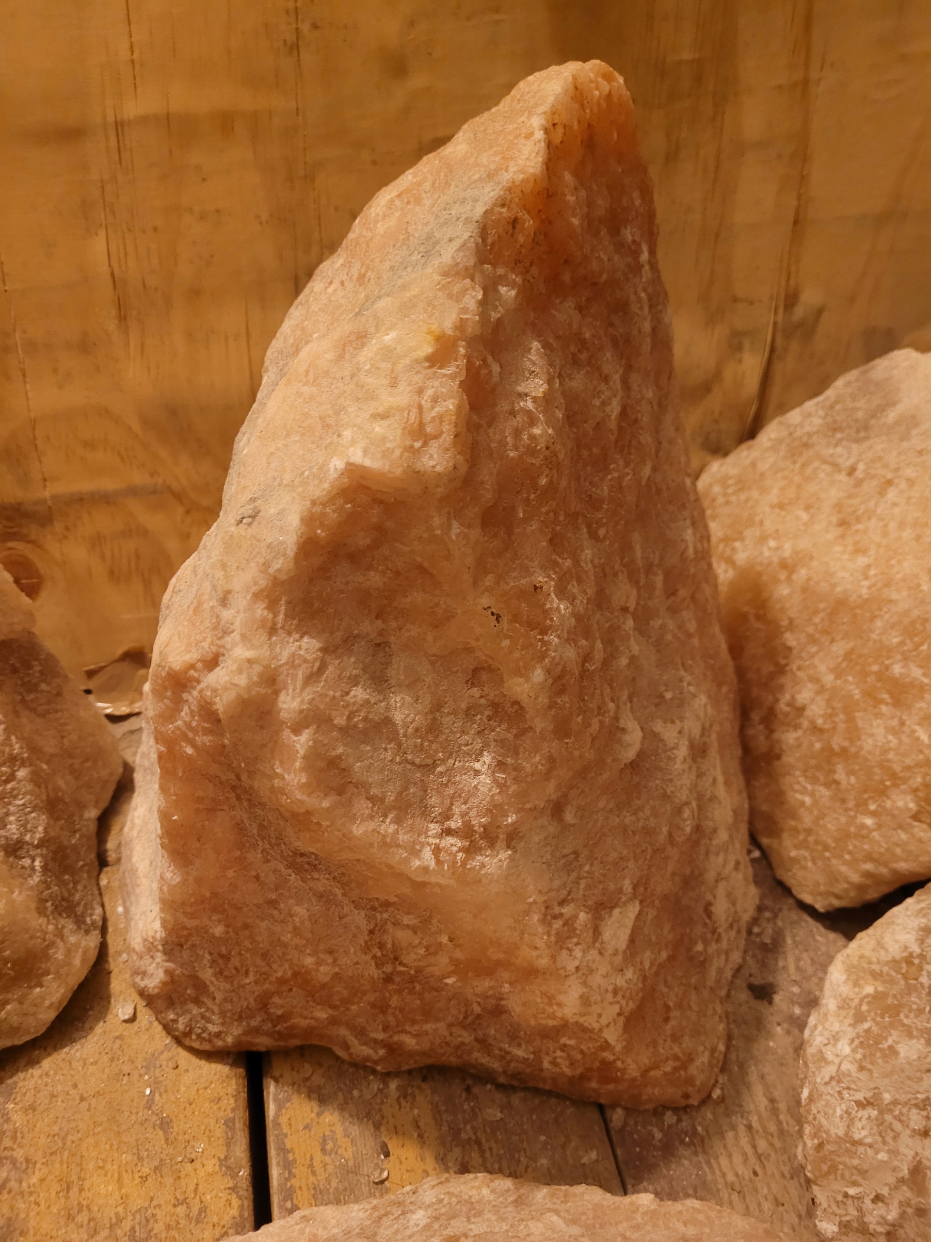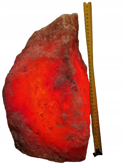 Każda bryła soli ma niepowtarzalny kształt i barwę (pomarańczowa, czerwona lub różowa), dzięki czemu każda lampa jest unikatowa.